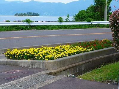 西浦小学校前の道路わきにはちいさな花壇があります。現在、黄色のマリーゴールドがあざやかに咲いていて、強烈なアピールに思わず目をとめてしまいます。(運転中の方はくれぐれも気をつけましょう。)