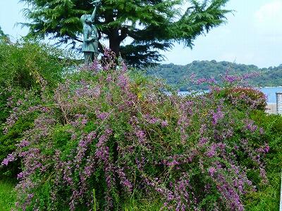 振返って、校庭を見てみると「はぎ」の木があります。「はぎ」は敦賀市の花にも指定されています。可憐なつぼみが咲きだし、緑の中にうす紫の小川のせせらぎがつくられていくような感じがします。