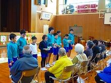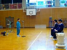 | 立石地区の卒業生の方に、お話しです。この頃は、学校の近くに教員の住宅があって、よく教えてもらったとか。 | 色浜地区の卒業生の方の思い出です。 いかだレースがやはり印象に残っておられるようでした。 | 子どもたちの思い出&決意の言葉です。 4月からは、新しいところでもがんばろう | 最後の浦っ子太鼓の演奏です。 息もそろって決まってました。 | |||