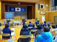 2部は休校式はで、あいさつの後、校旗を敦賀市教育委員会で預かっていただく移管をおこないました。最後は全員で校歌を歌いました。