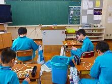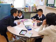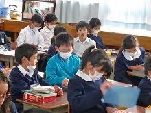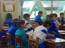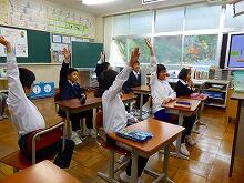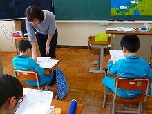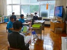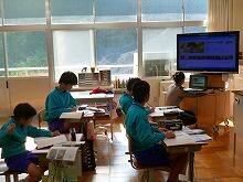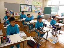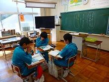 | 5・6年生は理科でした。日本の川の特徴をまとめていました。 | 世界の川との比較もしながら、発表しています。発表して、ワークにまとめる、ちょっと忙しそうでした。 | 朝の練習の様子です。 どうも近々委員会の発表があるようです。 |