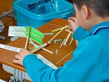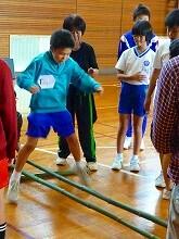 はじめは、体育館でフィリピンの踊り「バンブーダンス」をみんなで踊りました。竹を使ってリズムよく踊るおどりなので、みんな汗ばみながら練習していました。