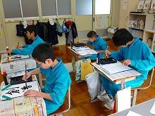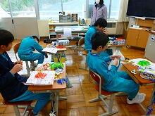 5・6年生の図工の様子ですが、何やら変わった絵を描いています。聞いてみると、絵の中に自分の名前をまぎれ込ませておくことが条件だとか。そんなことできるのかな?