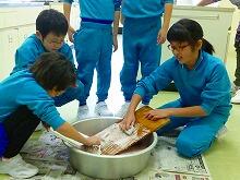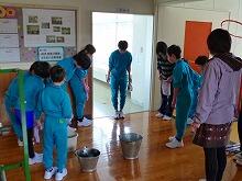 | 理科室の大掃除です。休校式の練習・会場設営の後、6年生が手伝ってくれていました。 | 集めたごみを袋に入れるのですが、すぐにいっぱいになってしまいます。 破れないように、ちょっと優しく押しましょう! | 運んで行くのですが、これが結構重たくて‥。(はじめは袋を引きずっていっていました。ナイショです) | 隅から隅まで、1年間の感謝の気持ちを込めて拭いてくれています。 | |||