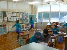 (5限目からは卒業式準備となります。ふつうは、卒業生は帰るのですが、何せ少ない人数なので、頼りがいのある6年生には少しだけ準備を手伝ってもらいます。)