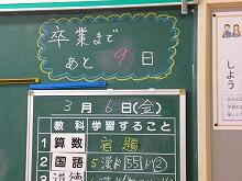 今日は、時間をかけて長い間学んだ校舎の大掃除をおこないました。教室内のいらないものや使わなくなったものを処分し、自分の机やロッカーの中も雑巾できれいに拭き、4月にもらった時と同じようにピカピカに仕上げました。また、掲示物なども丁寧にはがし、残すものはきちんと整えられました。(今日は、6年生も来てくれてテキパキと片づけを手伝ってくれました。)