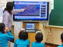| 3・4年生は社会の学習です。これまで、敦賀市の様子を調べ・学んできましたが、今日は別の都市の様子です。 | 本日学ぶのは、道後温泉です。(松山市) 子どもたちの中からは、『坊っちゃん』という声も。よく本を読んでいます。 | まずは、どこにあるかをチェック。敦賀から‥‥このあたりです。ミカンの産地でもあります。 | 松山市には路面電車も走っています。そういえば、福井市にも走っていましたね。 |