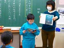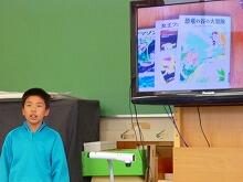 今日の業間の集会では、5・6年生が、自分が読んで面白かった本の紹介をしてくれました。本の内容の簡単な紹介のほか、感想等もしっかりと伝えてくれました。