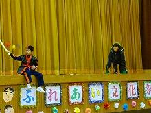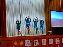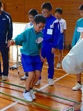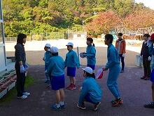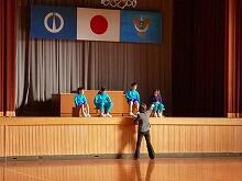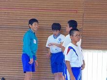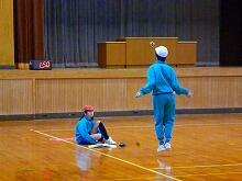 | 竹をたたきながら、開いたり閉じたり。その間をリズムよく跳びます。 | よく見ていないと、足を挟まれそうですが、すぐにコツをつかみました。 | ダンスが終わったら、違う学校の子たちと仲良く話です。結構会う機会もあるので、お互い気軽に話しかけていました。 | ||