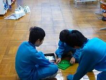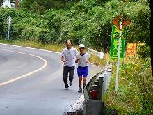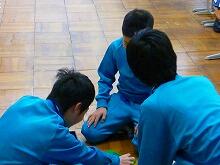 | 先生も一緒に、コースの確認です。上り坂で、2人ともちょっときつそう? | 試走後は、スタディールームにみんな集まって、「マラソン大会への道」ファイルに、本日の試走結果や感想・反省等の記入です。 | いろいろアドバイスを受けながら、次はどのように走ろうか、考えています。 |