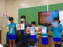| 右脳を鍛えるために、記憶したものを見ないで言うといいそうです。子どもたちは結構覚えていました。 | 4年生の国語は、表現の仕方について学んでいます。全体的に表現するのか、それともあるものに焦点を当てて表現するのか。どちらも大切ですよね。 | ||||||||