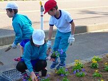 | 埋める前は、お約束の記念撮影です。みんなも主役だけれど、今日の主役はタイムカプセルなんだけど‥ | 2人でそっと置いてくれました。 狭いところでの作業はちょっと大変でした。 | スコップを使って交代で埋め始めましたが、土を入れても入れても、埋まってきません。 | そのうちに、みんながスコップを持ちだし、一斉に働きだしました。これで、作業もはかどります。 | 穴はなくなり、すっかりもとの校庭に戻りました。10年間、しっかりと子どもたちの思い出を預かってください。 | ||||||||||||