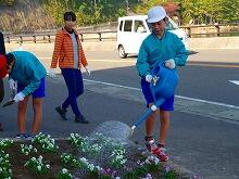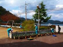 | 最後には、全員が入っての記念撮影となりました。 | 暖かな日差しとがっこうのみんなに見送られ、卒業生たちが巣立っていきます。 | 最後は、やはり担任との握手です。 | みんなからお花などたくさんもらって、両手はいっぱいです。お祝いの気持ちもたくさんもらいました。 | 学校の向こうにある水島は、いつもと変わらずみんなを見守っていますよ。 |