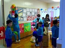 雨降りの今日は、マラソンはできません。そんなときは、全員で大なわとびです。6人にへってしまって運動量はばっちり(?)楽しく真剣に跳んでいました。(引っかかると腕立て伏せ5回が待っています。でも子どもたちは笑顔で簡単に腕立てをこなしていました。)