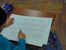 | 左手の”ばち”でたたくところに、力強くない部分があるようです。 | 姿勢もしっかりそろってきました。 あと一息です。 |