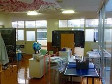 | 1階の図書コーナーです。 ちょっと写っていませんが、本は残っていますよ。水槽の熱帯魚は、引き取り手があり、そこへ貰われていきました。 | 光の庭の水も抜きました。 鯉は、大きなビニール袋に入れられ、もっと広い”二夜の川”に引っ越しました。 | 体育館はいつもと同じ風景です。 | 3・4年生教室の様子です。 | |||