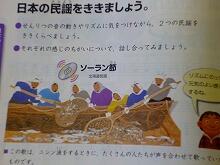 | 2冊目の本は、「ウラパン オコサ」です。 | 途中でクイズも入ってきました。写真の人の数は”オコサ・オコサ・ウラパン”とのこと。何でそうなるの? (?の女の子は入れません) | どうも”オコサ”は2を、”ウラパン”は1を表すようです。 | しおりをいただきました。 さっそく使わなくては!! |