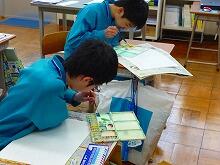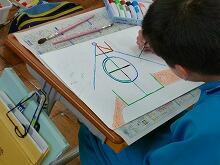 5・6年生の図工の様子ですが、何やら変わった絵を描いています。聞いてみると、絵の中に自分の名前をまぎれ込ませておくことが条件だとか。そんなことできるのかな?