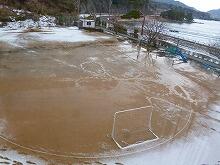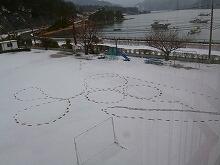 | 下絵が終わったようで、これから彩色を始めます。下絵には動物も描かれていましたが、どんな作品ができるのか楽しみです。 | 家の中に文字が隠されているようですね。今はまだ輪郭ですが、壁などが塗られたら、よく見ないと見つからないかも‥。 | これも芸術? 今朝の校庭の様子です。昨日の帰りに、ちょっと寄り道で楽しんだ様子でした。 | 昼過ぎの校庭です。 芸術ははかないもの。ほんの僅かに残っているのを見るのも、いろいろ想像がわいてきていいのかもしれません。 |