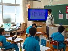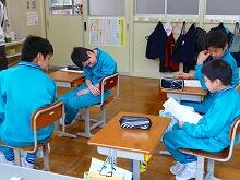 | 5年生には、仕上げで「空いた所をすべて書いて」とお願いしてしましました。 これは、来週火曜日の休校式で使います。 | 給食準備も少人数になりましたが、分ける数も減っているし大丈夫か? | 国語の授業風景。 新出漢字の意味や書き順の勉強です。 授業もあと少しで終わりになります。 | お待ちかね、昼休みです。 バドミントンブーム再来!! 体いっぱい使って楽しんでいます。 |