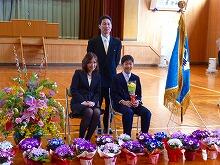 | 卒業式後の学級の様子は、どの学校にも見られますが、黒板には在校生からの贈り物の言葉です。 | お父さんやお母さんに見守られながら、先生から一言。(この後、1年生からの写真のスライドショーもあったようで、盛り上がったとか) | 小規模校だからこそできる記念撮影です。 一生の思い出としてください。 | それぞれの卒業生家族と担任とで撮影しました。 | 「男の子は、もうすぐお母さんとくっつくのは嫌がる年になるぞ~。」という周りからの言葉もありました。そういえば、今年の卒業生はすべて男子です。 | |||||