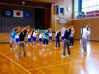 この日の練習は、2グループに分かれてお互いの演技を見合いながら、よかったところや直す部分などを話し合って練習が進められました。時間の最後に合わせた演技は、おもわず見とれる(?)ような演技になってきました。