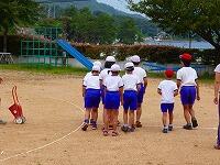児童会長のあいさつの後、競技が始まりました。子どもたちだけの競技のほかに、親子での競技もおこなわれ、ほのぼのとした雰囲気のなか進んで行きました。