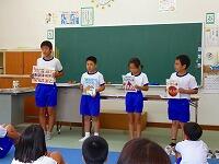| | | 6年生3人は、司会者と発表者に分かれ、調べてきたことや考えたことをもとに、上手くそれぞれの意見を述べていました。また、それらを司会がしっかりまとめて進めてくれました。 3、4年生は、司会者から声をかけられると自分の感じたこと(思い)や考えを話すことができました。初めて聞くことでまた聞いてすぐに感想や意見をと言われると、大人でもなかなか難しいものですが、みんなしっかりと言えました。 |