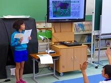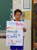 | | | 昨日、6年生が討論会がありました。4回目の討論会となりますが、これまで国語の時間に学んだことを3・4年生にも知らせようということで、業間の時間を借りてはじめて開催されました。 「水族館のイルカは幸せである」というテーマについて(遠足で水族館に行ったのでこのテーマを選んだそうです)、肯定派と否定派に分かれて意見を述べ合い、それを5年生と3・4年生に聞いてもらいました。 |