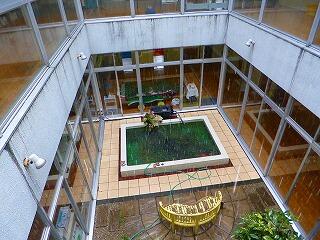 | 段ボールでつくられたかたつむり。図書支援員さんが作成し、小学校廊下の棚の上に置いてくれました。なんとも愛嬌のある顔で、見ていると思わずにっこり。 授業での子どもたちの考え込む時の顔や、わかった時に輝く目、得意そうな発表の姿など、見ているとこちらも思わず笑みがこぼれてきます。(今は冷房もまだ入っていないため、教室の窓も全開状態です。) |