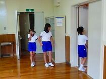 しかし、登校時はひどい雨風と重なり、服やズボンも随分とぬれてしまいました。(本校職員も登校指導を行い、一緒に集合場所から学校まで歩きました)教室に入ったら、風邪をひかないよう、すぐに体操服に着替えました。