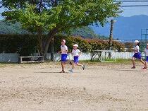 | 宿泊学習や学びの発表などがあり、先週は走ることができませんでした。久しぶりの業間マラソンです。 | すっきりの青空のもと、体も軽く走っています。先頭の2名は、10月2日の陸上記録会の長距離に出場します。 |
