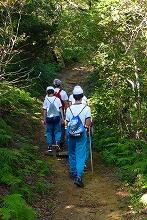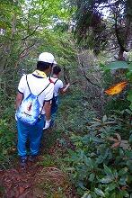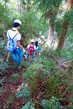 | 校長先生から激励の言葉をいただきました。 | 颯爽と出かけます。 | 10分ほど歩いて登山道入り口に | さてここから山道です。 | 倒木の幹を越えて | ||||||||||||