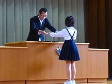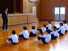 | 出発前に、3・4年生が激励に来てくれました。 | 一言ずつ、応援の言葉を贈りました。 | |||||||||