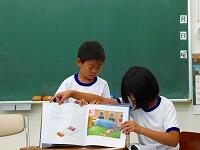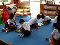業間の時間に、図書放送委員の5名の人が、読み聞かせなどに挑戦しました。読み聞かせは、いつもは支援員さんがしてくださいますが、今回は、自分たちで本を選び、読み方を工夫するなどして、四苦八苦しながらも、みんなに思いが伝わるように読み聞かせをしていました。