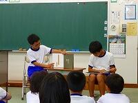 登場人物の2人もちょっとユニークでしたが、それより、話して二人の掛け合いが、息もぴったりでおもしろかったです。 | 恒例の感想発表。 自分たちの読み聞かせは、どんなふうに感じてもらえたのでしょうか、ドキドキです。 |