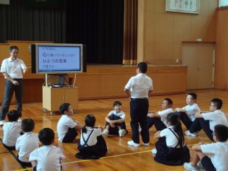朝の全校集会では、校長先生から夏休み中の敦賀市内での出来事のお話がありました。