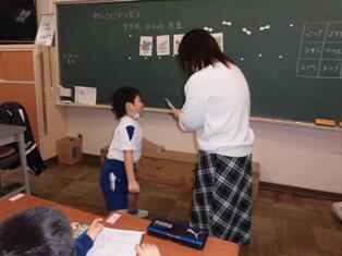 この日は、教科書にある「Who are you?」という読み物のフレーズを覚えて、