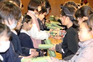卒業式予行の後、皆勤賞の表彰が行われました。
