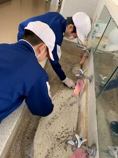 3月5日、4年生による、大そうじ大作戦が決行されました。福祉の心に満ちた4年生たちが、校舎内の階段、渡り廊下、手洗い場、トイレなど、ふだんの掃除では落ちないような汚れを取るために立ち上がりました!子どもたちは一生懸命にたわしでこすったり、ぞうきんで拭いたり、スポンジで磨いたりしていました。汚れが落ちると、子どもたちは「うわ!綺麗になった!」「すごい!白くなった!」と嬉しそうな表情を浮かべていました。終わった後はみんな真っ黒になったぞうきんやスポンジをもって集合し、大そうじ大作戦は成功を収めました。明日からの掃除もがんばります♪