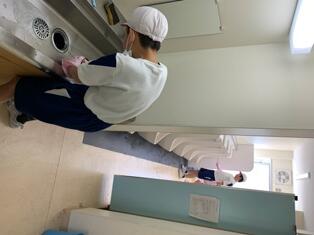 これまでたくさんの時間を過ごしてきたこの校舎に感謝の気持ちを込め、清掃活動に取り組みました。81人が学校中の様々な場所に分かれ、校舎全体をきれいにしました。普段の掃除ではできないところまで丁寧に掃除をしました。