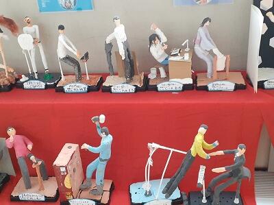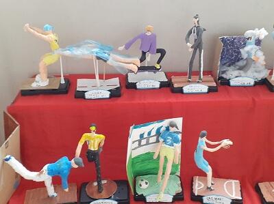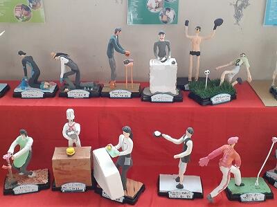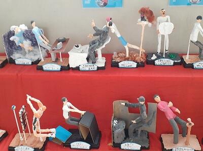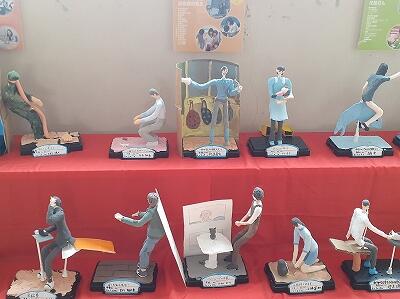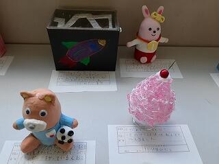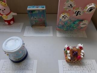 6年生が図工で制作した紙粘土の作品です。テーマは「12年後の私」。プロ野球選手、獣医、介護士、薬剤師、教師、美容師、農家、コック、ネイリスト、自衛隊・・・。バラエティに富んだ作品ばかりです。どんな夢か想像しながらご覧ください。