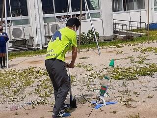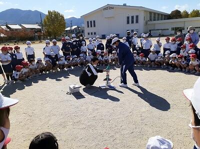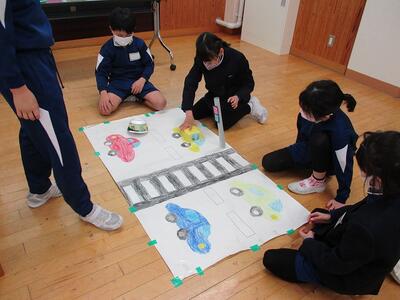 理科「ものの温まり方」の発展学習として、熱気球の実験を行いました。大きなビニール袋の中にためた空気を下から温め、袋の手を離すと・・・気球に見立てた袋は上へ上がっていきました。実験の後、「なぜ気球は上へ上がるのか」について、活発に話し合っていました。