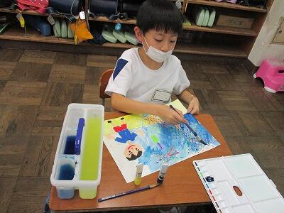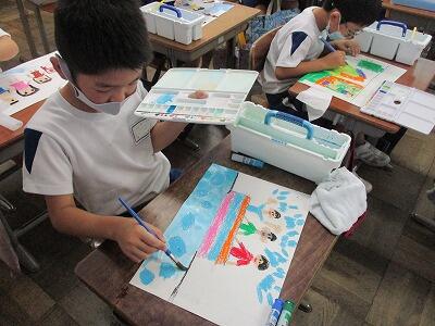 6年生の卒業に向けて、縦割り班の6年生に似顔絵を描きました。入学してから、清掃や縦割り遊びでたくさんお世話になった6年生に向けてありがとうの気持ちを込めて描いています。6年生からもらった写真をよく見ながら、丁寧に色を塗りました。