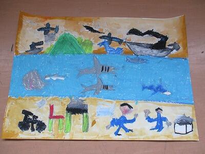 エネルギーのお話では、地球温暖化の影響で、地球の温度が約100年前と比べて約1℃上昇していることを、海の水温や気温の図を見て知ったり、家の中の電気に目を向けて、節電することの大切さを学んだりしました。