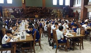 給食週間の献立は、人気メニューが並びました。28日のメニューは、皆大好きな「カレーライス」。学校では「黙食」が定着し、皆静かに食べています。