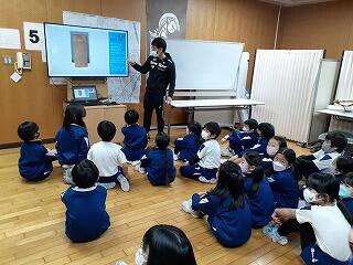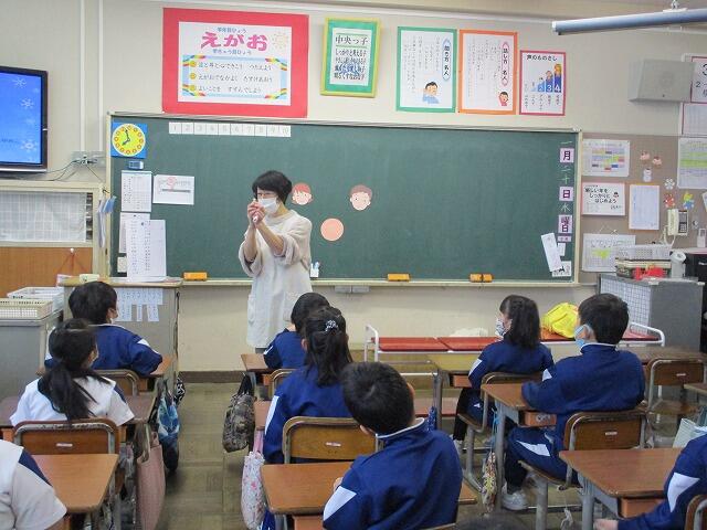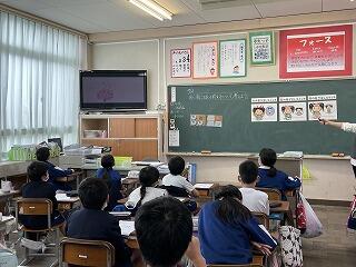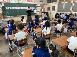16日(水)の2、3、4時間目に、ALTの先生に来ていただき、2回目の外国語の授業を行いました。今回は、「とんとんひげじいさん」の手遊び歌を英語で歌ったり、数字や色を英語で言ったりしました。英語の歌をたくさん教えていただき、今回も楽しく学習することができました。