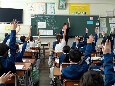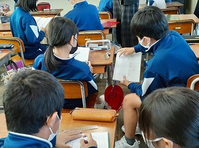 子どもたちは、具体物を動かしたり、図にかいたり、話し合ったりしながら、最後まで意欲的に学習していました。