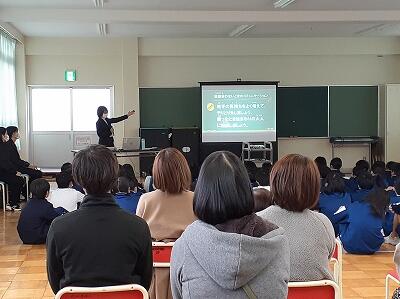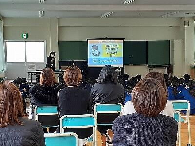 その後、生徒指導担当からは、進級するにあたっての心構え、事件や事故に巻き込まれないために気をつけることの話。養護教諭からは、春休み規則正しい生活をしましょうとの話がありました。
