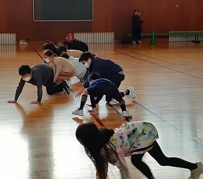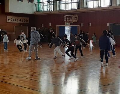 まず初めに時間跳びをしました。練習の成果を発揮し、この日、初めて目標時間をクリアした児童もいました。